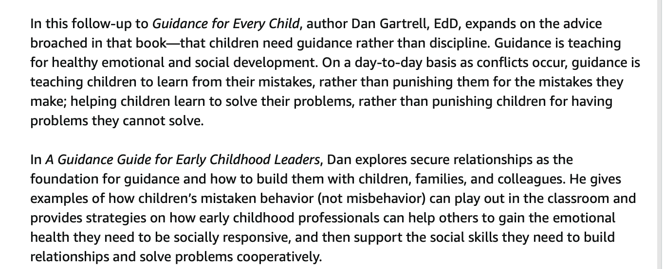 A great strategy to help reduce the increasing expulsion rate, Dan Gartrell’s guidance practices teach children to express strong feelings well, solve problems in creative ways, accept differences, and think ethically and intelligently. Use this book to empower children and never give up on any child.